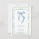 Chic och whimsical bröllopsdusch tackkort med en vintage grandmillenial-inspirerad grön scallop och blå blomster vattenfärg ram, en elegant blå båge, och "med kärlek + tack" visad i en blå kalligrafi stil. På baksidan kan du anpassa ditt tackmeddelande i enkel modern stil och lägga till ditt namn i en signatur-liknande stil, eller lämna tom för handskrivna anteckningar.