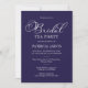 Inbjudan till elegant Navy Blue White Script Möhippa Tea Party-grupp