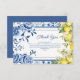 Elegant Blå Blommig och Gul Citron Bröllopsdusch Tack Kort