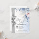 Elegant Blå Blommig Rädda Datum-kort med Silver Inbjudningar