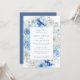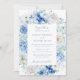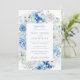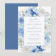 Denna bröllopsinbjudan har en akvarellblommig ram med eleganta blommor i olika nyanser av blått och handskriven script-teckensnitt. Med sin sofistikerade blommiga ram och detaljrikedom kommer denna inbjudan att sätta tonen för ett minnesvärt och elegant bröllop.