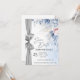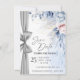 Elegant blå blommig Spara datum-kort med silver Inbjudningar