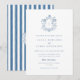 Elegant Blå Blommig Vapen Bröllopsinbjudan med Randig Baksida