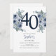 Elegant blå Blommigt 40:e födelsedagen Inbjudningar