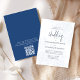 Den här designen har en QR-kod för elegant blå blommigt, en enkel klassisk boho-mall, en gästhämtning för online, ett klassiskt kalligrafiskt skript, ett vanligt formaliskt minimum av typografi, trädgårdsblomma, en minimal digitalnedladdning, en elegant ampersand monogram baksida, ett modernt, enkelt blockeringsbrev, ett förenklat skript för elegans.