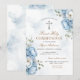 Elegant blå blomstermässig första heliga kommunion inbjudningar