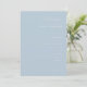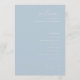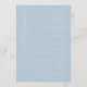 Det här bröllopsprogrammet har en minimalistisk och elegant design med en mjuk pastell blå bakgrund, vilket skapar en lugn och avkopplande atmosfär. Layouten är centrerad och vertikalt inriktad, med betoning på klarhet och enkelhet, medan typografin kombinerar kursiv och sans-serif-teckensnitt för att tillföra sofistikation och läsbarhet. Perfekt för par som söker en modern och formell look, denna mall tillåter anpassning av namn, datum och platser, vilket gör den ideal för att anpassa din speciella dag. Frånvaron av ytterligare motiv håller fokus på texten, vilket säkerställer en ren och modern estetik som förmedlar lugn och firande.