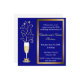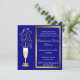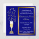 Elegant Bröllopsjubileum Partyinbjudan, gjord med återvunnet kartong som har en blå bakgrund, vit text och guldbeläggningar. Ett champagneglas, med en söt guldbåge på skaftet, har gnistrande stjärnor som kommer från toppen av glaset, och en guldfärgad ram omger textområdet. Anpassa all text för din fest. Mycket vacker inbjudan.