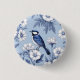 Elegant blå fågel och vit blomsterdesign knapp