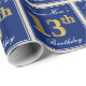 Denna enkla och eleganterna pappra utformning har ett meddelande om personlig som "Namn-här's 13:e födelsedag" (med "13:e" som har ett utseende som påminner om guld i utseende) i ett fyrkantigt område med blå färgad med en enkel gräns-kontur. Namn är i en elegant som är skript som liknar den vita färgaden och kan anpassas. Att packa pappert som detta skulle kanske kunna användas när man fyller på födelsedagskalkerna för någon som firar sin trettonde födelsedag. [~Z0000221]