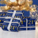 Elegant, blå, faux Guld 21:a födelsedag + Namn Presentpapper