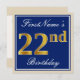 Elegant, blå, faux Guld 22:a födelsedagen + Namn Inbjudningar