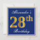 Elegant, blå, faux Guld 28:e födelsedagen + Namn Inbjudningar