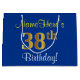 Den här enkla presentsäcksdesignen i eleganten innehåller ett personlig som "Namehere's 38th Birthday!" (med "38th" som har ett utseende som påminner om guld i utseende) på en blå färgad. Namn är i skriptliknande gult-färgad och kan vara personlig. En sådan här personlig-födelsedagspressning skulle kanske kunna användas när en present eller gåva till någon som firar sin trettioåttonde födelsedag är ge. [~Z0000260]