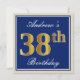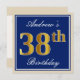 Elegant, blå, faux Guld 38:e födelsedagen + Namn Inbjudningar