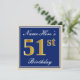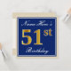 Elegant, blå, faux Guld 51:a födelsedag + Namn Inbjudningar