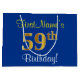 Den här enkla presentsäcksdesignen i eleganten innehåller ett personlig som "FirstName's 59 Birthday!" (med "59:e" som har ett utseende som liknar guld och som liknar utseende) på en blå färgad. Namn är i skriptliknande gult-färgad och kan vara personlig. En sådan här personlig-födelsedagspressepåse skulle kanske kunna användas när en present eller gåva till någon som firar sin femtionionde födelsedag är ge. [~Z0000260]