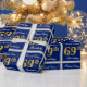 Elegant, blå, faux Guld 69:e födelsedagen + Namn Presentpapper
