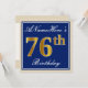 Elegant, blå, faux Guld 76:e födelsedagen + Namn Inbjudningar