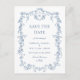 Elegant blå fransk toile bröllop Save the Date Vykort