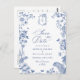 Elegant Blå Fransk Toile Bröllop Spara Datum Vykort