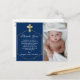 Elegant Blå Guld Kors Pojkar Dop Tack Kort