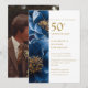 Elegant blå guldblommig 50-årsjubileumsfoto inbjudningar