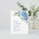 Elegant Blå Hortensia Bröllop Spara Datum Vykort