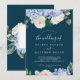 Denna eleganta blå hortensia navy bröllopsinbjudan är perfekt för ett vår- eller sommarbröllop. Den klassiska blomdesignen har mjuka pudrig blå vattenfärgshortensior accentuerade med neutrala rosa blommor och gröna blad.