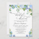 Elegant blå hortensia vattenfärg bröllopsbrunch inbjudningar