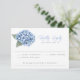 Elegant blå hortensia blomma för ditt vår- eller sommarbröllop svarskort. Perfekt för det traditionella men ändå eleganta bröllop du har i åtanke. Klassisk serif-teckensnitt med modern skript typografi. Original hortensia konstverk endast finns här. För förfrågningar om anpassade designändringar av den oberoende designern vänligen maila paula@labellarue.com INNAN du anpassar eller beställer.