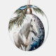 Elegantens blå juleskretsar med en ornat blå och vit julbalja, prydnadsföremål och vit häst. Perfekt för hästälskare, hästuppfödare, tränare för hästar, hästhudingar, rancher, stall.
