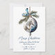 Elegantens blå juleskretsar med en ornat blå och vit julbalja, prydnadsföremål och vit häst. Perfekt för hästälskare, hästuppfödare, tränare för hästar, hästhudingar, rancher, stall.