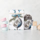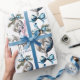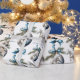Elegantens blå juleskretsar med en ornat blå och vit julbalja, prydnadsföremål och vit häst. Perfekt för hästälskare, hästuppfödare, tränare för hästar, hästhudingar, rancher, stall.