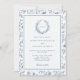 Lägg till tidlös elegans på din speciella dag med denna kineseri-inspirerade brölloppsinbjudan, med en delikat blå blomstertoalettkant och blomsterkrön med monogram.