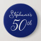 Elegant Blå monogram 50:e Födelsedagsfesten Knapp
