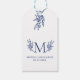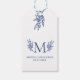 Bröllop-presentens märkre är en nyfiken, minimalistisk, modern, anpassade blå manustypografi med en blå botanisk blomma gren - en enkel design från elegant bröllop.