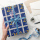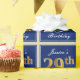 Denna enkla och eleganta presentpapper design har ett personligt meddelande som "Jessica's 29-årsdag" (med "29" i en imitation guldliknande färg) inom ett blått kvadratiskt område med en enkel ram. Namnet är skrivet med en elegant vit text i skrivstil, och kan anpassas. Presentpapper som detta kan kanske användas när man slår in födelsedagspresenter till någon som firar sin tjugonioårsdag.