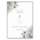Elegant blå och elfenbensfärgad bröllopsskylt med bordsnummer