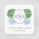 Preppy-mönster för företagspresentationskort med en Boxwood-topiaryboll i en blå och vit akvarell-gingkärlets krukväxt. Framför detta finns en vapensköldsform med utrymme för en tre-bokstavsmonogram. Akvarellelementen målades ursprungligen för hand av mig i akvarell på 100% bomullspapper innan de skannades och arrangerades/stiliserades digitalt (vapensköldsformen är gjord av en annan konstnär). Du kan ändra alla textfärger och teckensnitt (klicka för att anpassa ytterligare under textanpassningsområdet - detta tar dig till designverktyget).