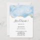 Födelsedagsinbjudan med vacker isblå agatdesign med falska guldglitteraccenter.