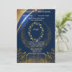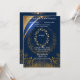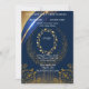 Gör ett sofistikerat intryck med denna blå och gul blomsterbröllopsinbjudan med en rik blå bakgrund dekorerad med lyxiga guldbotaniska blommor. Perfekt för klassiska, kungliga eller moderna bröllopsteman, denna anpassningsbara design låter dig anpassa namn, datum och lokalinformation samtidigt som du skapar en koordinerad premiumskrivarpaket.