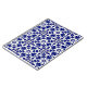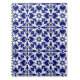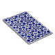 Detaljerad ornamental illustration som visar ett blått och vitt blomstergeometriskt mönster, perfekt för design, textilier och dekoration inspiration.