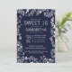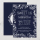 Elegant, modern och chic vit och trendig marin blå blommigt hand plockade mönster, Sweet 16-födelsedagsbjudanden. Den här klassiska och sofistikerade designen är perfekt för skolans, trendigets och snyggtens födelsedagsflicka. Anpassa med ditt eget meddelande på framsidan och ett anpassat inledande monogram på baksidan. All fotoutskriftsdesign.