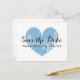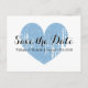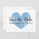 Vackra blå och vita hjärta Spara datum vykort för brölloppsfest. Vintage väderbiten kärlekssymbol med elegant skripttext för brud och brudgum namn plus datum. Söt stilren design personlig med din anpassade meddelande för gäster. Anpassningsbar bakgrundsfärg t.ex. vit. Skapa din egen moderna rustika lantlig chic stil tryck för elegant äktenskap. Trendiga spara datum-kort. Handskriven kalligrafi typografi.
