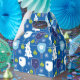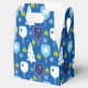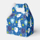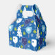 Elegant 💙 blått och vitt 🤍 julklapp 🎄 favoritbox .Blå och vita burkpadlar, vit Julgranar med betleball Julgran baubles, snöflingor på trendigets mörk blått bakgrund.