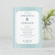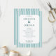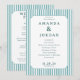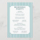 Det här bröllopsprogrammet har en modern, minimalistisk design med en vertikal layout som ramas in av omväxlande ljusblå och vita ränder. Färgpaletten inkluderar mjuk teal och dämpad marinblå, vilket skapar ett elegant och sofistikerat uttryck. Typografin är ren och klassisk, med seriffer för att framhäva ceremonidetaljerna i ett strukturerat format. Perfekt för par som söker en tidlös och formell estetik, kombinerar detta program klarhet med en touch av förfining, vilket gör det idealiskt för alla bröllopsfiranden.