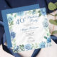 Elegant blå rosblommig 40-årsfest inbjudningar