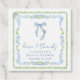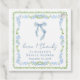 Eleganta bröllopsdusch tack varupärmar med grandmillenialinspirerade vintagegröna scallop- och blå blomstermålade ramar, en delikat blå coquette-rosett i akvarell, "kärlek + tack" visad i en elegant blå kalligrafiskrift, och brudens namn och duschdatum i klassisk serif-typografi.