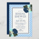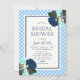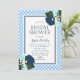 Elegant blomsterliknande bröllopsdusch-inbjudan med blå rosor, mint- och gula blommor och gröna blad med en elfenbensvit mitt och blå kanter mot en söt babyblå gingham-bakgrund på framsidan. Inbjudan har en blå baksida. Kolla in matchande och andra bröllopsdusch-/bröllopspresenter här https://www.zazzle.com/rosewoodandcitrus/gifts?cg=196540141241316965&rf=238364477188679314
